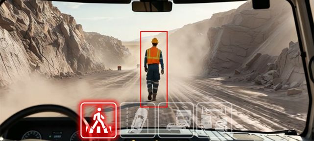 A real-time, 360° surround view around the vehicle eliminates blind spots that can endanger drivers, field workers, and other vehicles. Thanks to strategically placed, high-resolution AI cameras, the driver can see every detail of the surroundings, which is crucial for safe maneuvering on uneven terrain or in areas with limited visibility.
